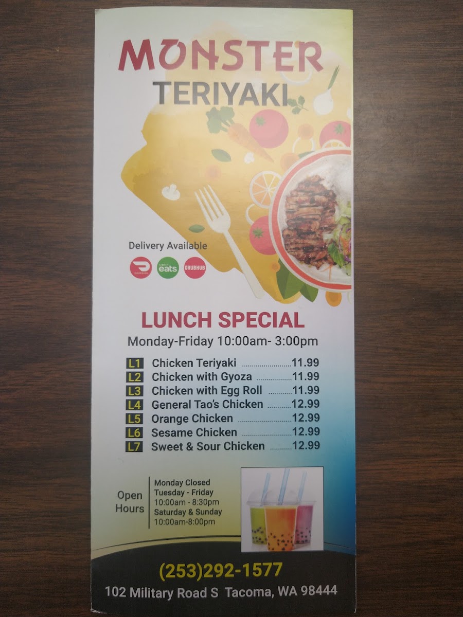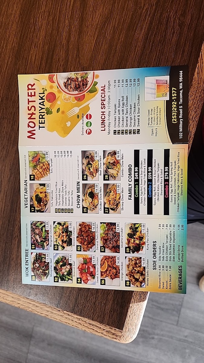 Overall, Monster Teriyaki offers an extensive and flavorful menu, with something for everyone. Whether you're in the mood for classic teriyaki, a comforting ramen bowl, or a hearty wok entrée, the Monster Teriyaki Menu delivers delicious, satisfying meals every time.
